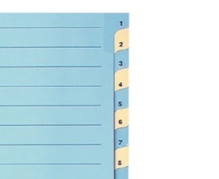 | PLAIN | Plain | ✗ | ✗ | Mit verstärkten nummerierten Taben !<br/><br/>Für Format A4 aus 220 g/m²-Karton in blau/gelb - au... | ||