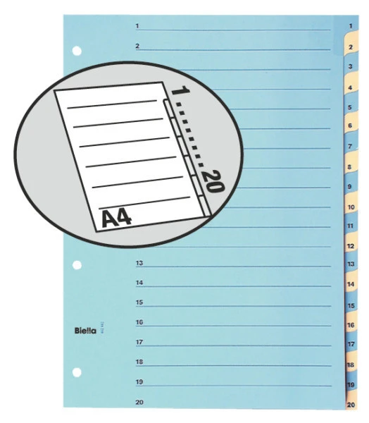 Produktinformationen "BIELLA Register Karton farbig A4 462442.00 1-20"