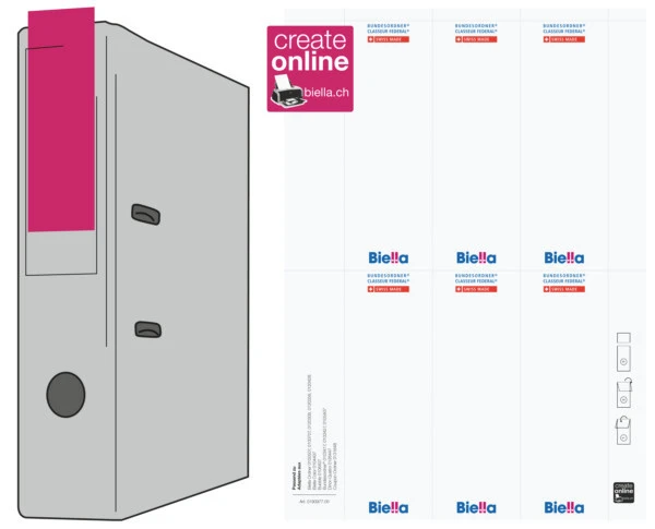 | PLAIN | Plain | ✗ | ✗ | Einsteckrückenschild für 7 cm Ordner aus weissem 200 gm²-Karton. Vorderseite mit Biella Logo, Rü... | ||