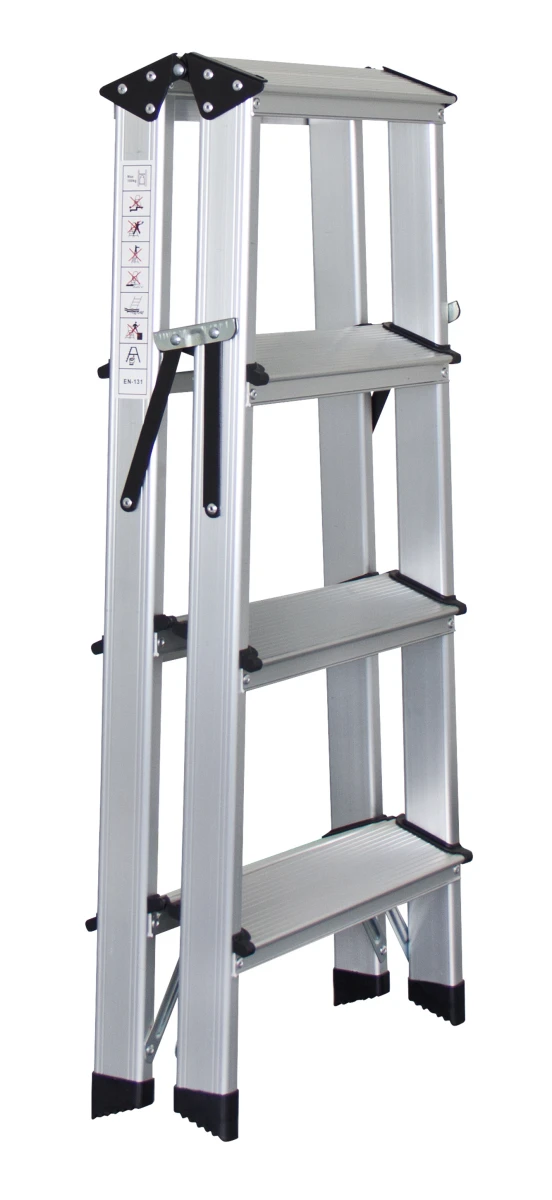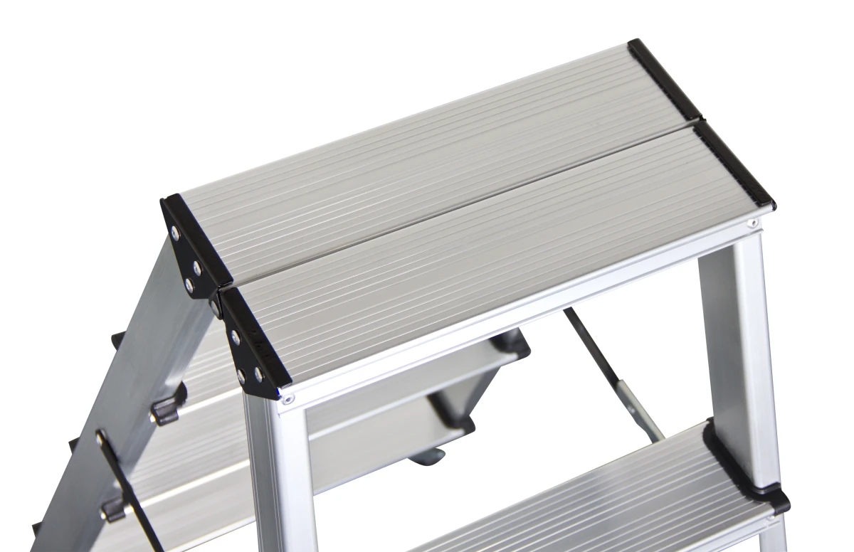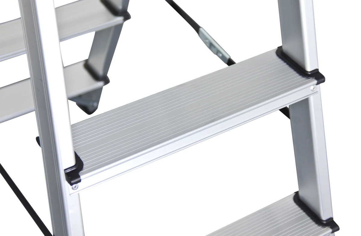 Diese Bockleiter besteht aus Aluminium. Das Gewicht von dieser Bockleiter von Kibernetik beträgt 3,26 Kg.