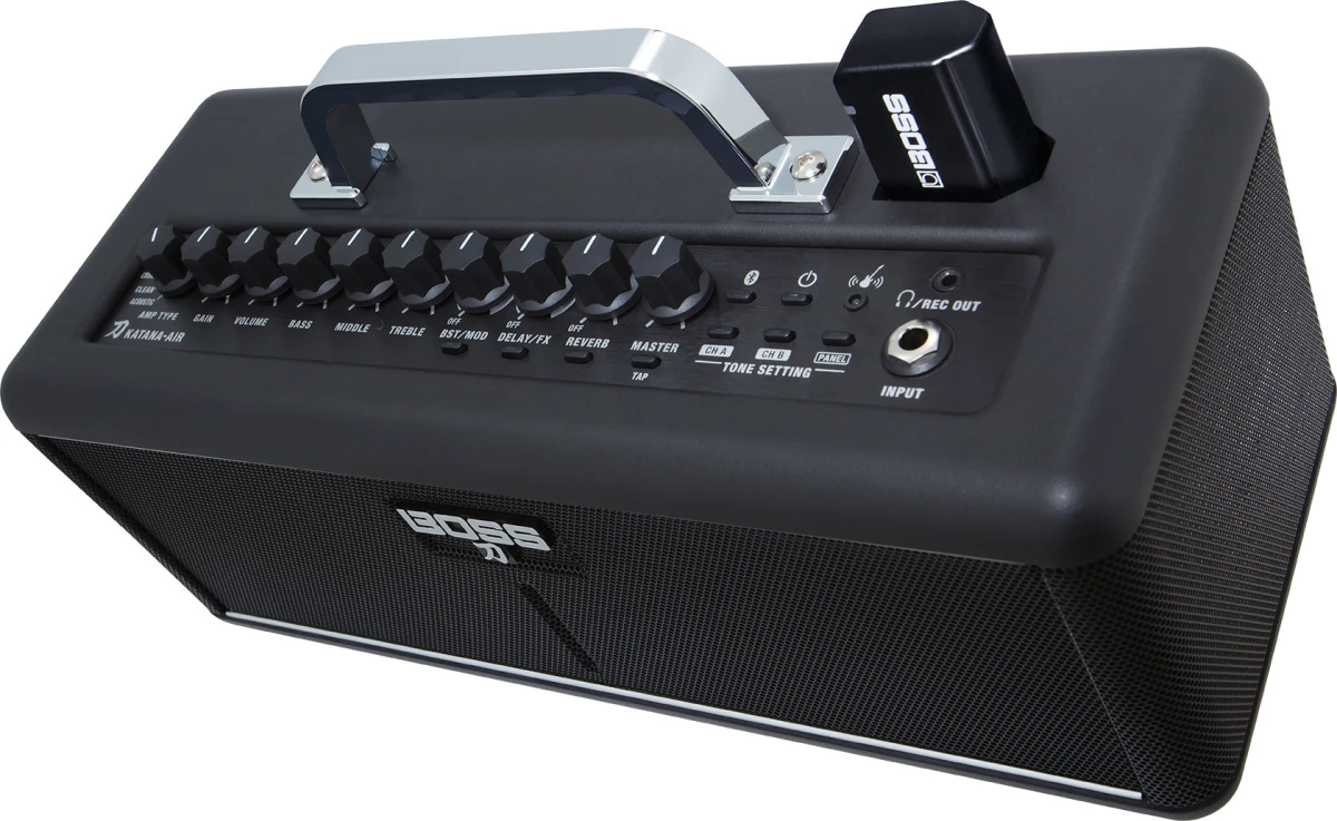 Lernen Sie den KATANA-Air kennen, den weltweit ersten, komplett kabellosen Gitarrenverstärker. Auf Basis der von BOSS entwickelten, bahnbrechenden, kabellosen Gitarren-Technologie bietet dir der KATANA-Air die Freiheit, zu jammen und zu üben, ohne dich mit der lästigen Verkabelung deines Setups herumzuschlagen. Zudem kannst du den Verstärker bei Bedarf allein mit Batterien betreiben und nahezu überall spielen.