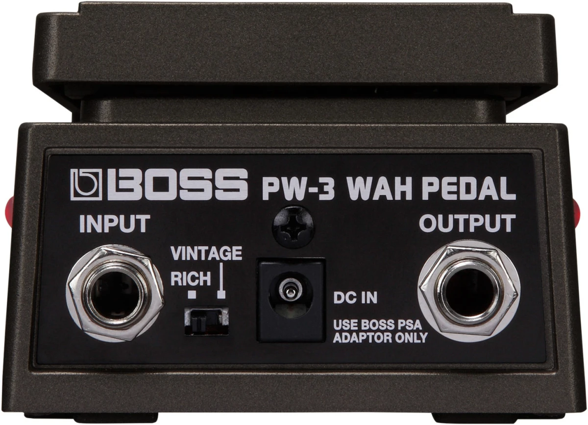 Das komplett analog aufgebaute PW-3 liefert professionelle „Wah-Sounds“ in einem robusten und kleinen Gehäuse, das dem Anwender viel Platz auf dem Pedalboard einspart. Von BOSS neu entwickelt, verhindert das PW-3 im “Rich-Mode” den typischen Verlust der Definition und die abgedämpften Bässe klassischer Wah-Schaltkreise. Sollte es doch lieber traditionell sein, schaltet man auf der Rückseite einfach in den „Vintage-Mode“ um den kernigen „Dirty-Sound“ klassischer Wah-Pedale zu ermöglichen. Ungleich anderer Pedale die, wenn sie verkleinert werden, an Funktionalität und Spielgefühl verlieren, hat das PW-3 die perfekte Balance zwischen praktischer Anwendung und Spieleigenschaft. Das Aluminium Druckgussgehäuse hinterlässt beim Spielen einen soliden und robusten Eindruck unter dem Fuß. Der lange, sanfte Regelweg des Pedals reagiert absolut zuverlässig und fühlt sich einfach gut an. Bei verkleinerten Pedalen sieht man oft nicht, ob sie nun an-, oder aus geschaltet sind. Das PW-3 löst dieses Problem mit Status LEDs auf beiden Seiten, somit erkennt man sofort was Sache ist. Beim PW-3 ist es möglich die Pedalkraft einzustellen. Mit einem Hex-Schlüssel kann man die Stellschraube nach Belieben anziehen oder lockern.