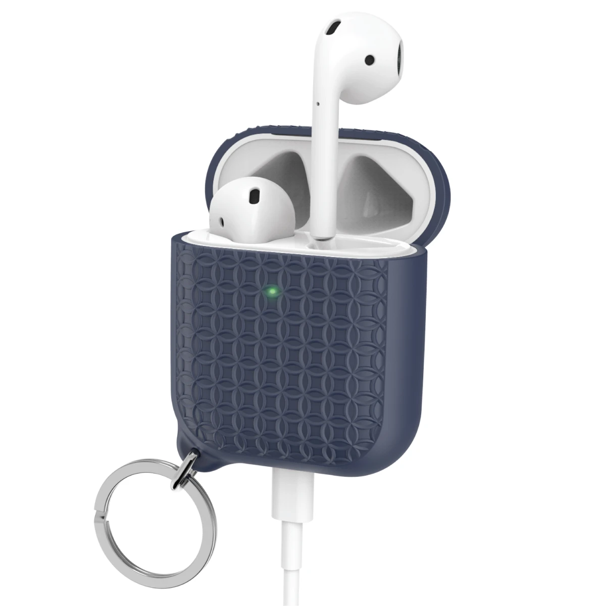 Trendiges Case mit originellen Schlüsselanhänger & langlebigen Materialien für einen festen sowie robusten Schutz für Apple AirPods - Midnight Blue