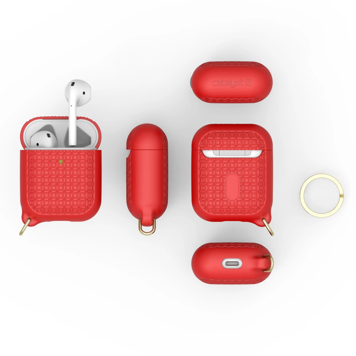 Trendiges Case mit originellen Schlüsselanhänger & langlebigen Materialien für einen festen sowie robusten Schutz für Apple AirPods - Flame Red