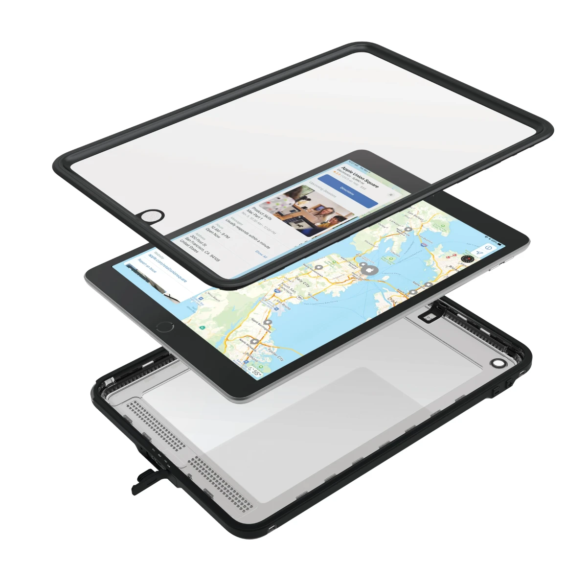 Das wasserdichte Case von Catalyst für das iPad 10.2" (2019) bietet außergewöhnliche Leistung und mit IP68 wasserdichte Zertifizierung von 2m und einer Fallschutz zertifizerung von 1.2m. Das Case verfügt über eine stoßfeste, außen griffige Gummipufferschicht , extra große Ports und integrierter Bildschirmschutz, eine hartbeschichtete optische Linse und akustische Membranen. Die transparente Vorder- und Rückseite dieses Gehäuses ergänzt das Design des Geräts, sodass Sie unabhängig von Ihrem Aufenthaltsort stilvoll aussehen und Ihr iPad optimal schützen können, ohne seine Funktionalität einzuschränken. Mit dieser Leistung ist Ihr Gerät vor verschüttetem Kaffee, unordentlichen Küchen, Dreck und Regen im Ausseneinsatz sowie staubigen Werkstätten oder etwaige Abenteuern des Lebens geschützt.