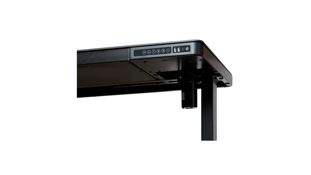 Der Schreibtisch kann drei verschiedene Sitz- und Stehpositionen speichern und lässt sich so immer auf die ergonomisch richtig eingestellte Höhe des Benutzers zurückfahren.