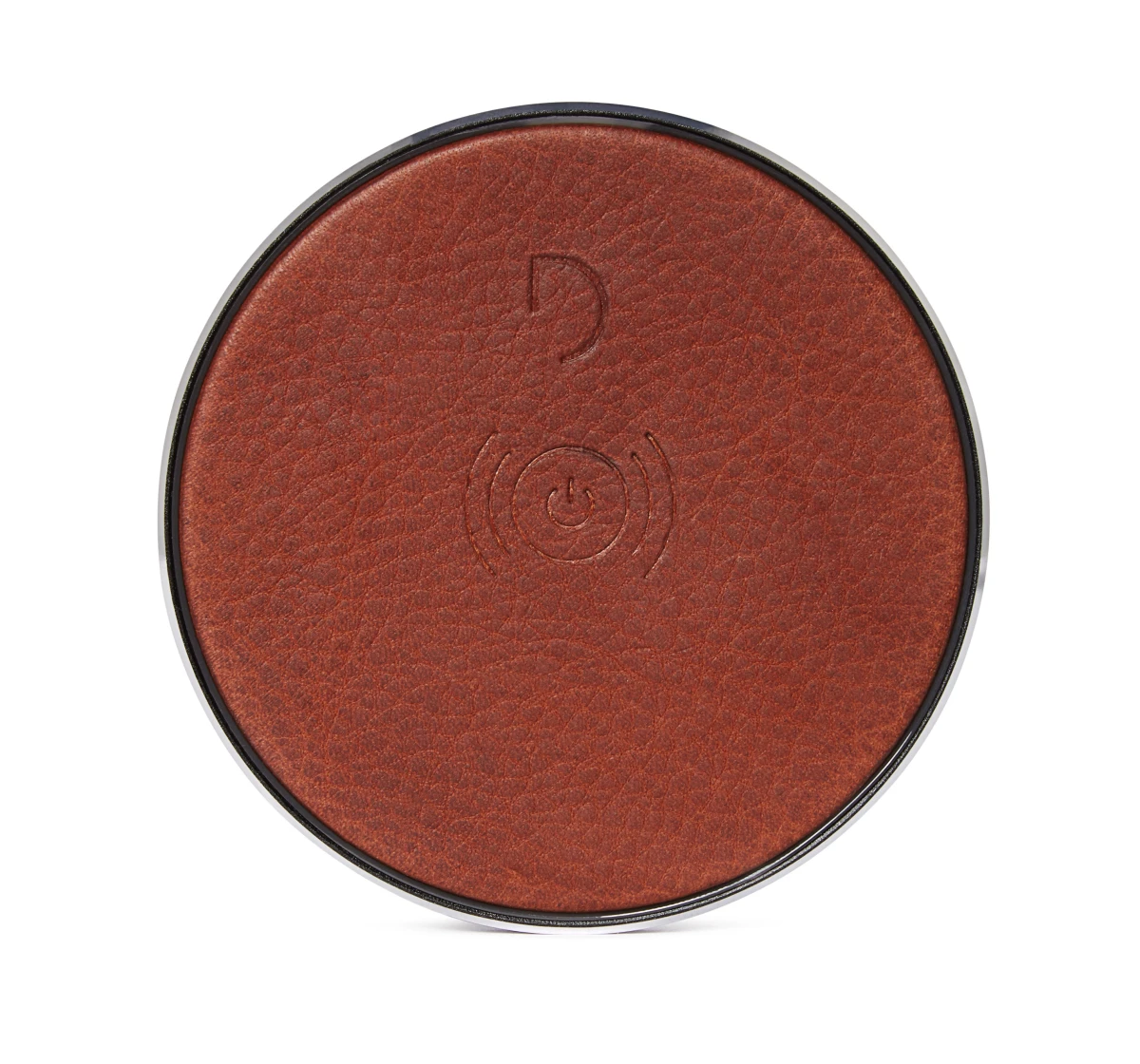 Elegantes Qi 10-Watt Fast-Charging Ladepad mit edlem Metallrand und sanftem Leder für kabelloses Aufladen aller Qi-kompatiblen iPhones/Smartphones - Cinnamon Brown
