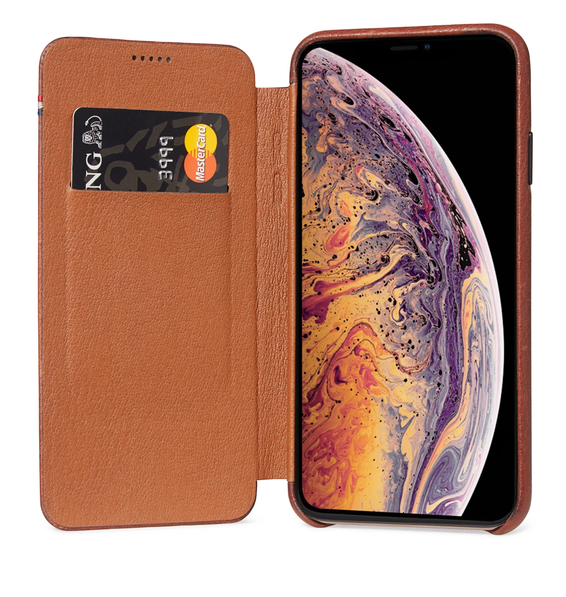 Ultradünne & stilvolle Schutzhülle mit einem Kartensteckplatz und praktischem magnetischem Verschluss für iPhone Xs Max (6.5") - Zimtbraun