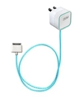 Ladegerät (2.1 Ampere) mit abnehmbaren USB-30 Pin Dock Connector Kabel für ältere iPad, iPod & iPhone mit 30 Pin Dock - Schwarz (Licht: Hellblau)