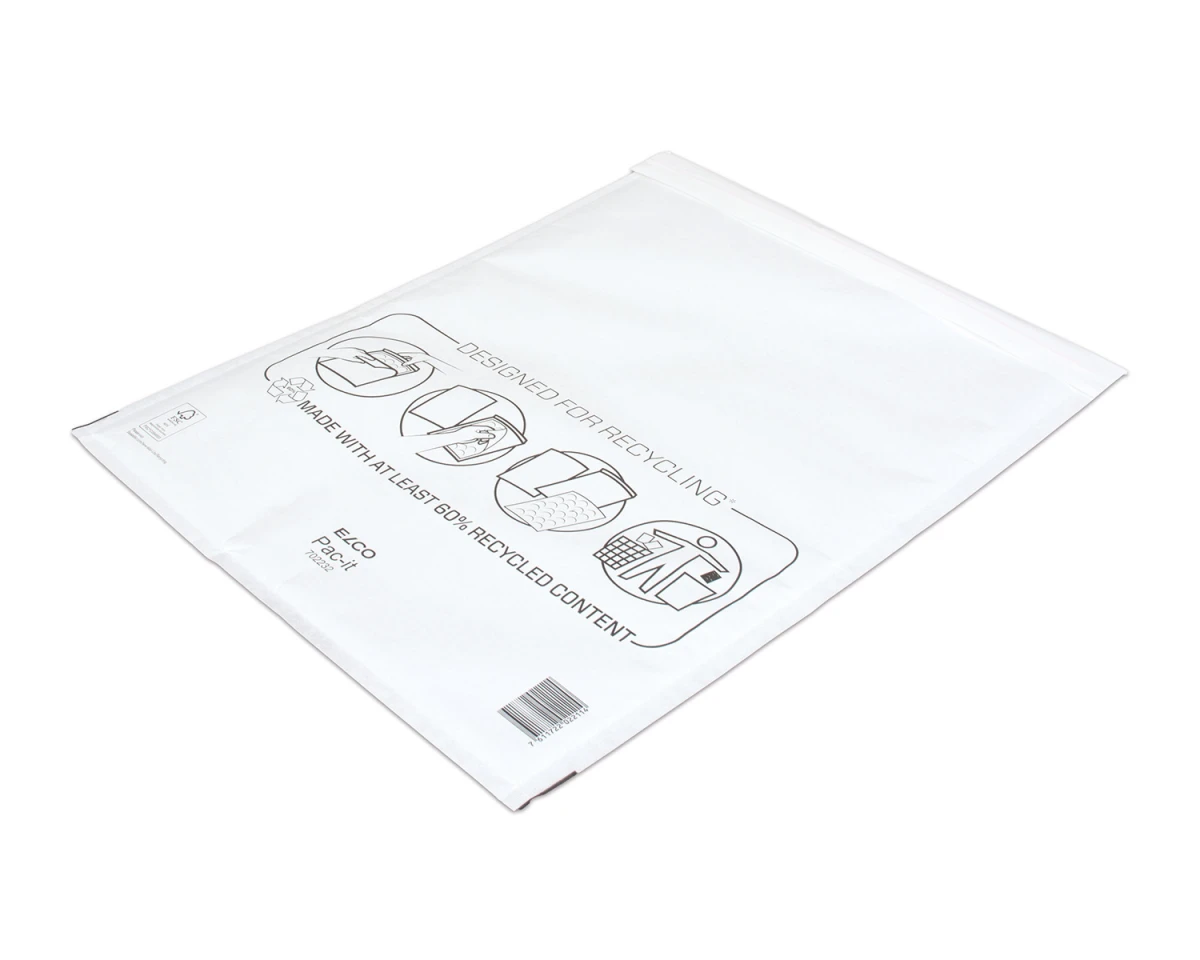 Bag-in-bag-System mit herausnehmbarer Innentasche. Die Aussentasche ist zu 100% recyclierbar. Diese Luftpolsterversandtasche verfügt über einen Haftklebeverschluss.