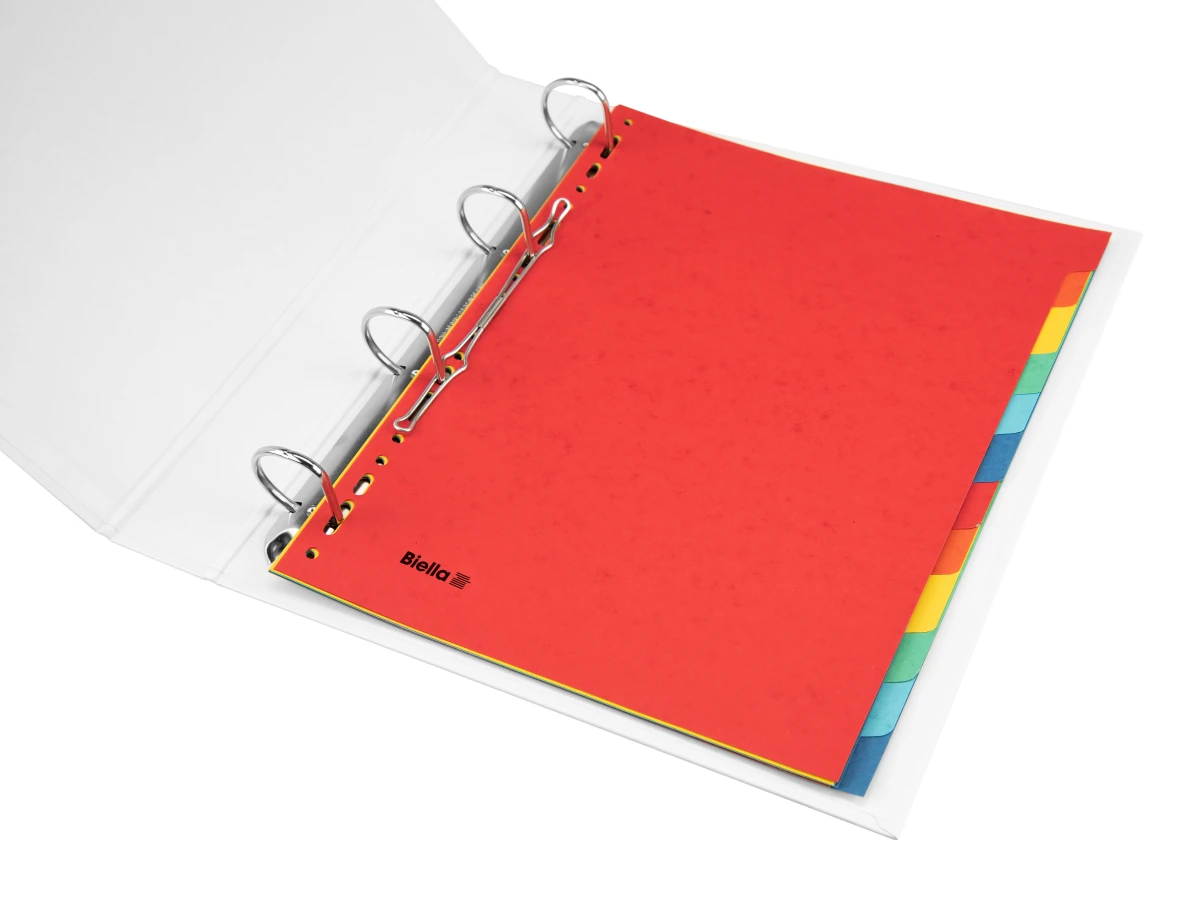 Ordnen Sie Ihre Unterlagen schnell und effizient mit den praktischen Registern von Biella. Die farbigen Taben sowie der individuell beschriftbare Index ermöglichen ein schnelles Auffinden Ihrer Dokumente. Das überbreite Format ermöglicht ebenfalls die Anwendung mit Zeigetaschen in Ring- oder Zeigebüchern. Für Format A4 überbreit. Recycling Karton rot/orange/gelb/grün/hellblau/blau. Lochung Universell, Taben unbedruckt. Einzeln in Beutel.
