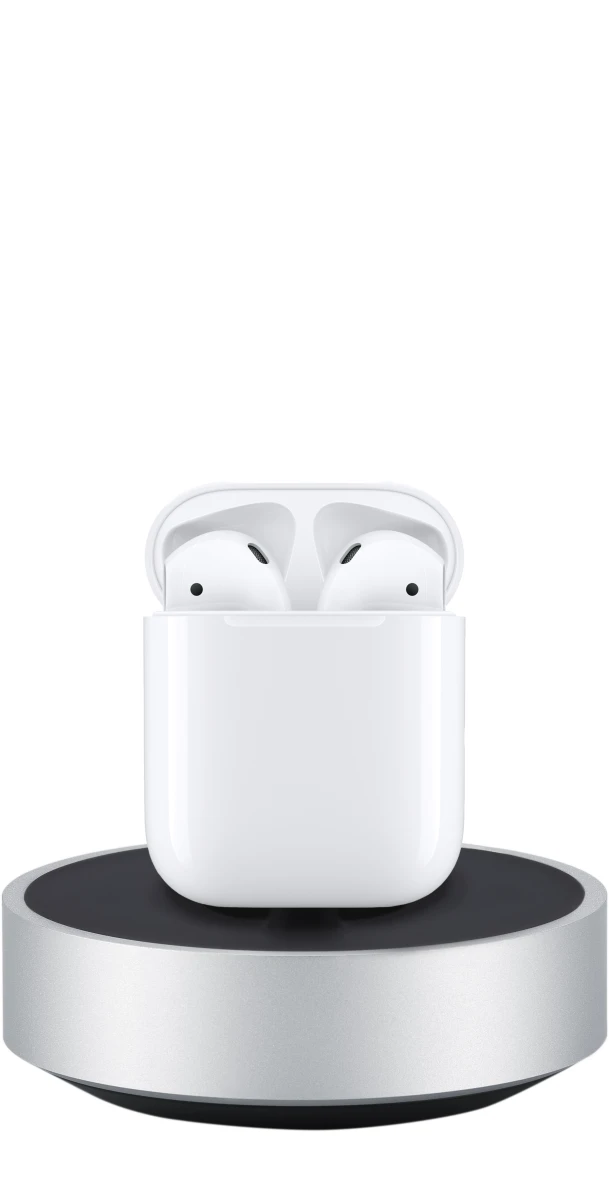 Elegante funktionale Dockingstation mit intelligenter Kabelaufbewahrung für alle iPhones & andere Apple Geräte mit Lightning Anschluss wie das Ladecase für die Apple AirPods - Alu