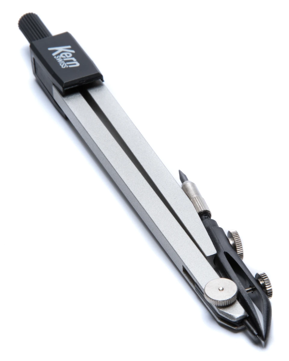 Der Wendezirkel von Kern ist ideal für präzises Arbeiten mit Papier oder Pappe und eignet sich auch ideal für den Gebrauch auf Kunststoff. Bei der Produktion des Wendezirkels der Marke Kern wurde Metall verwendet.