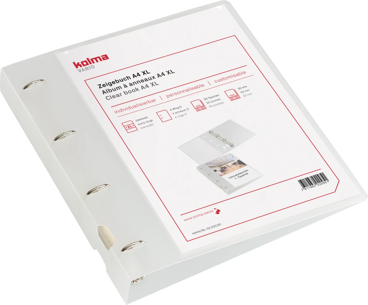 Produktinformationen "KOLMA Zeigebuch Vario XL KF A4 02.022.00 weiss, 4-Ring 40mm"