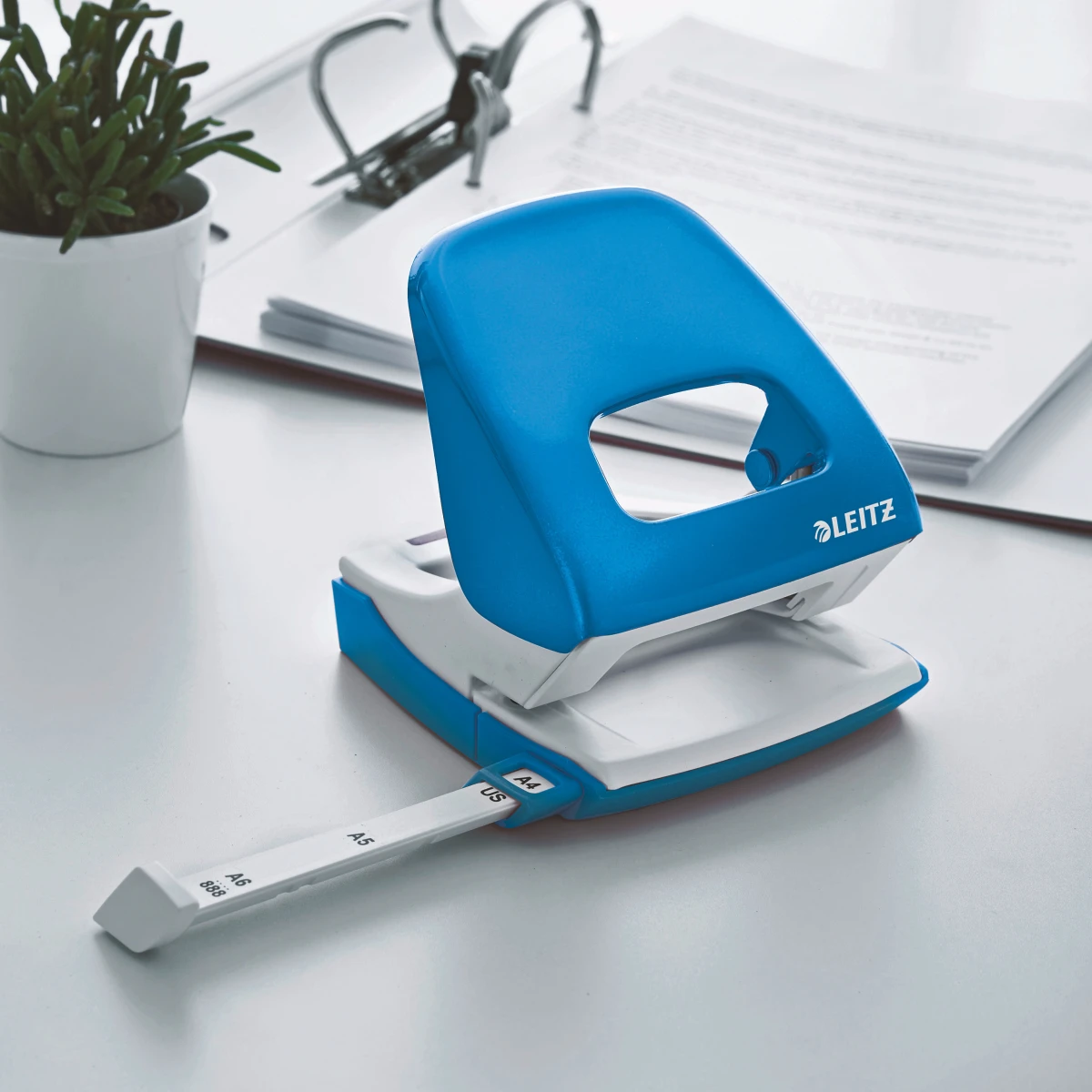 Metalllocher in auffallenden WOW Farben für die tägliche Nutzung. Stabil und zuverlässig. Locher mit patentierter, ergonomischer Griffmulde und ultra-scharfen Lochstempeln für weniger Kraftaufwand.