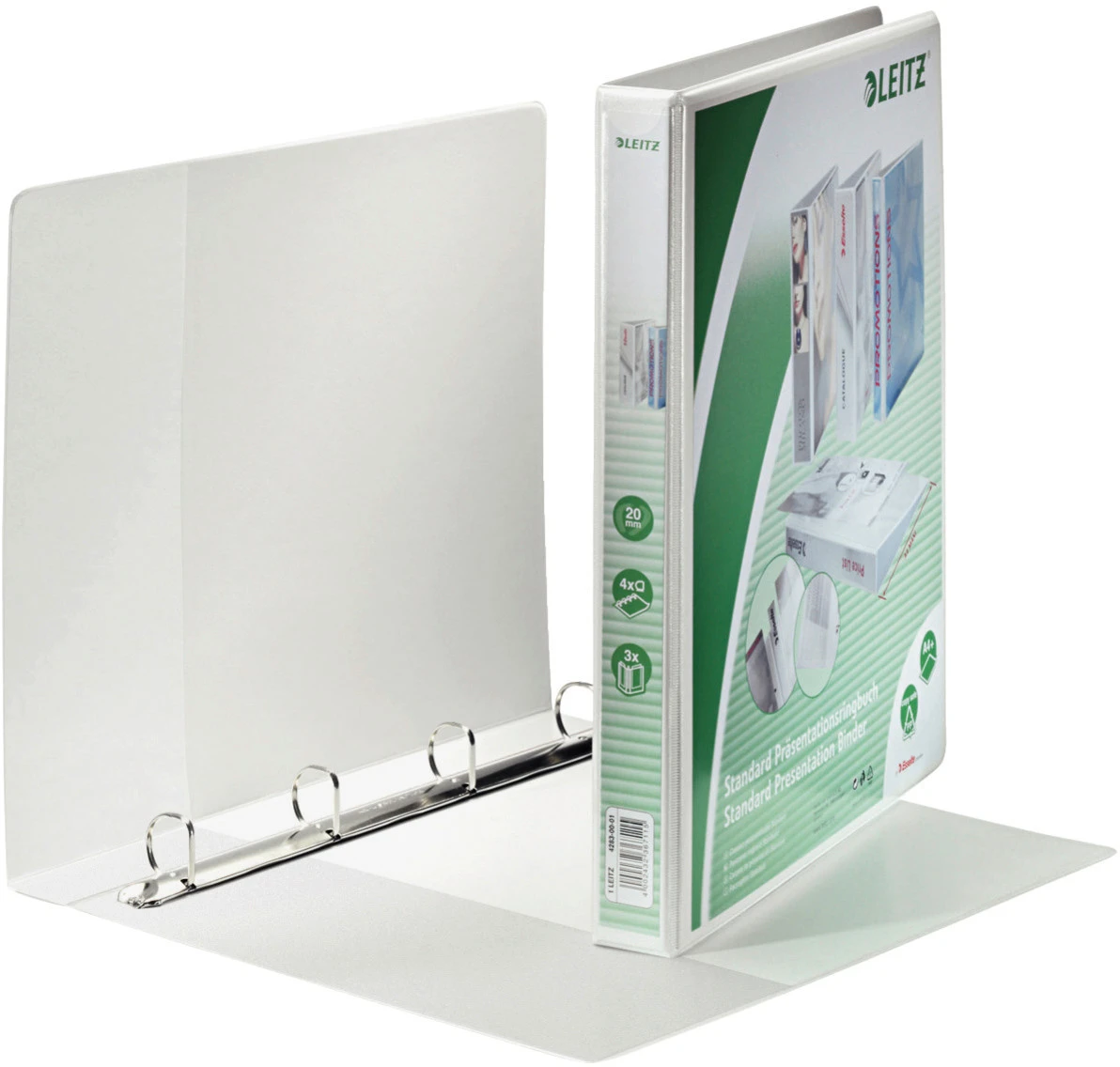 Produktinformationen "LEITZ Präsentationsringbuch A4 42830001 weiss 4R 20mm"