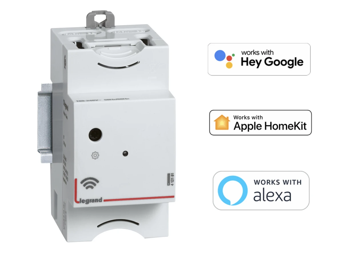 Gateway:Ermöglicht Ihnen die Fernsteuerung Ihres Hauses (Beleuchtung, Rollläden und Elektrogeräte) per Smartphone über die App. Home + Control App. und/oder per Sprache über einen Sprachassistenten.Wenn ein Router in der Wohnung / Haus vorhanden ist, überprüfen Sie mittels Ihres Smartphones, ob das WiFi-Signal am Gateways ausreichend ist.Wenn das Signal nicht ausreicht, platzieren Sie den Router näher am Schaltschrank oder verwenden Sie einen WiFi-Verstärker, um die volle Funktionalität gewährleisten zu können. Es muss eine WiFi-Verbindung von 2,4GHz vorliegen.