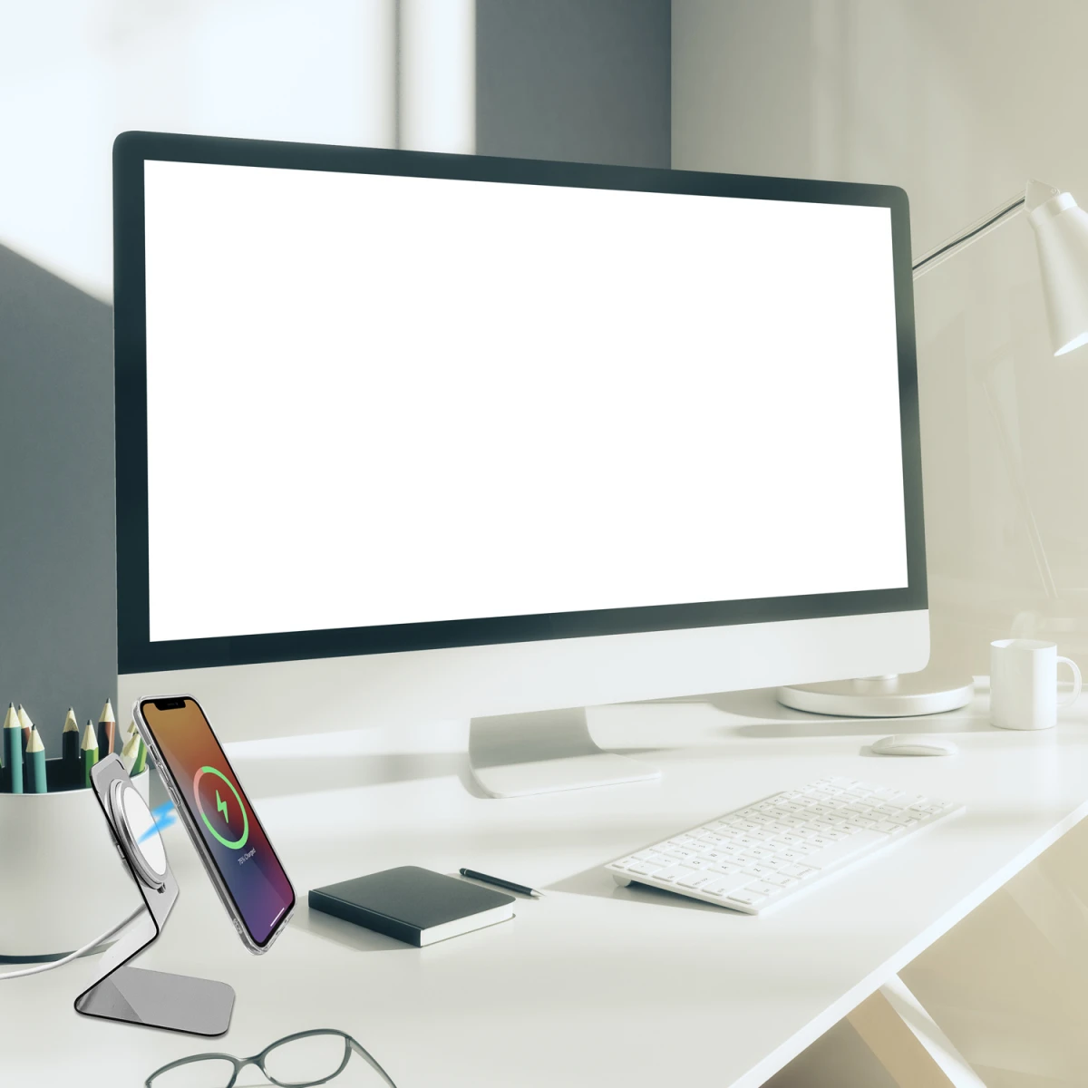 Eleganter und robuster MagSafe Ständer, kompatibel mit allen iPhones mit MagSafe - Silber