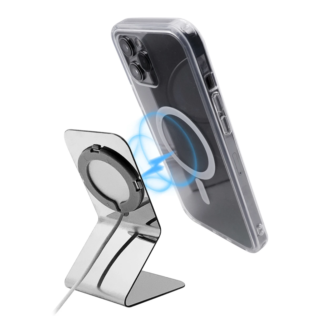 Der MMAGSTAND-SS hat ein elegantes und robustes Design mit einem präzisen Ausschnitt für das Original Apple MagSafe Ladegerät. - Hält Ihr iPhone in einem bequemen Betrachtungswinkel und bietet einfachen Zugriff und Sichtbarkeit im Quer- und Hochformat- Hilft Ihnen, Ihren Schreibtisch/Nachttisch aufgeräumt und sauber zu halten- Geeignet für Apple MagSafe Ladegeräte und MagSafe Hüllen