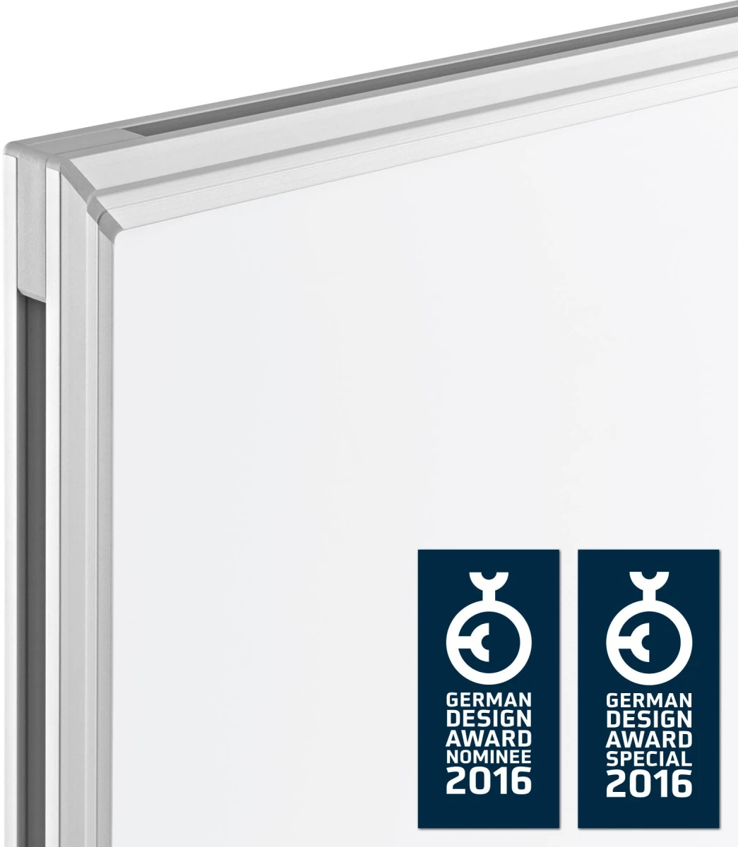 Modernes Whiteboard in schlichtem, elegantem Design. 5 Jahre Garantie auf die speziallackierte Oberfläche. Magnethaftend, mit Boardmarkern beschreibbar, trocken + feucht abwischbar. Mit eloxiertem Aluminium-Rahmen + eleganten Gehrungsecken in schlichtem Design. Mit rückseitig verschraubter Metallkaschierung für mehr Stabilität. Inkl. durchgehender Ablageleiste und Montagezubehör.