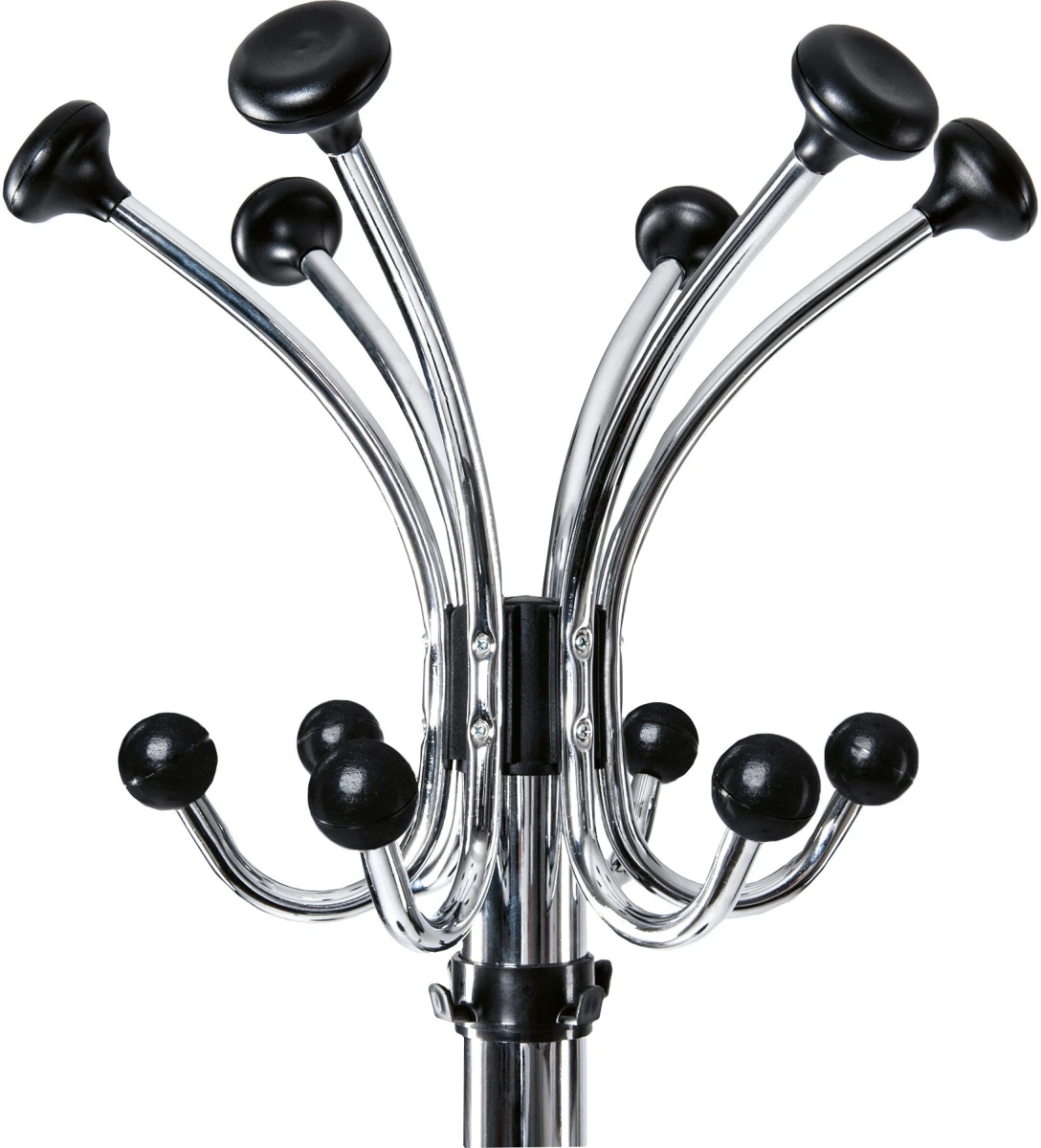 - 20 Haken: 6 Huthaken und 6 Jackenhaken aus Metall, je 4 zusätzliche Haken aus Kunststoff an der Säule und am Schirmständer