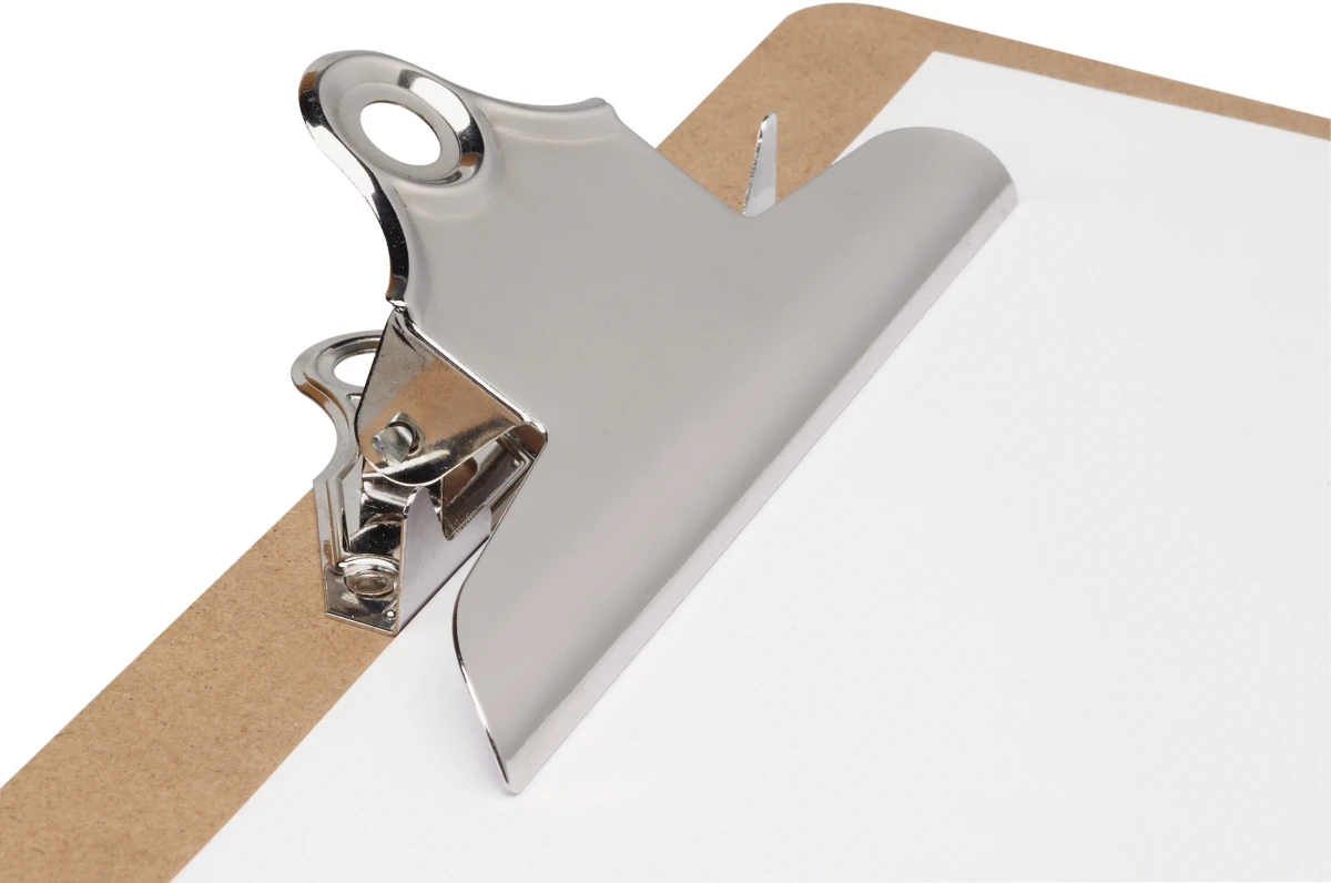 Stabile Design-Schreibplatte aus Hartfaser-Holz mit Nostalgie-Klemmer