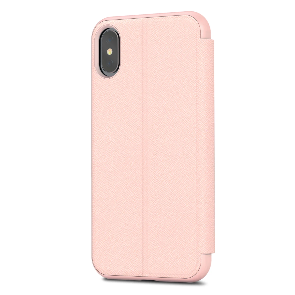 Edles berührungsempfindliches Folio mit Sichtfenster und Magnetverschluss für iPhone X/Xs (5.8") - Luna Pink