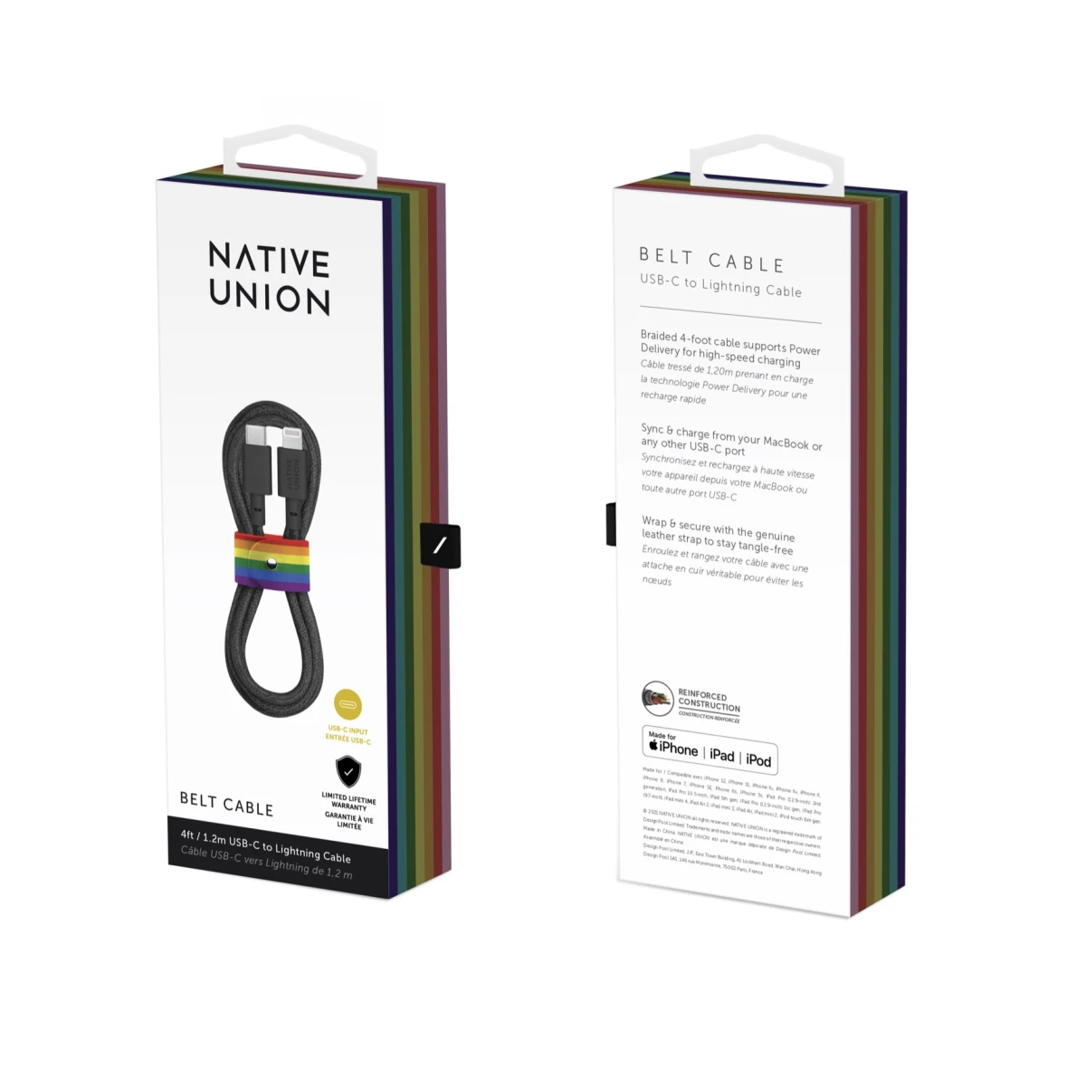 Elegantes 1.2 Meter langes USB-C zu Lightning-Kabel aus robustem Nylongeflecht und lebenslanger Garantie - Pride Edition