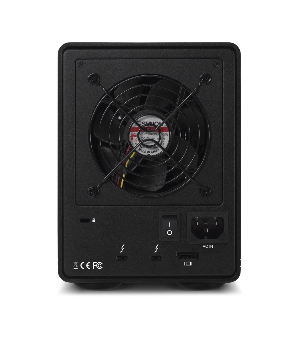 Storage Solution mit 2x Thunderbolt 3 Ports und 4x Einschüben für 2.5" / 3.5" SSD- oder SATA-HDD und -56TB Kapazität mit bis zu 1150MB/s, unterstützt RAID 0, 1, 4, 5, 10 inkl. SoftRAID XT - Schwarz