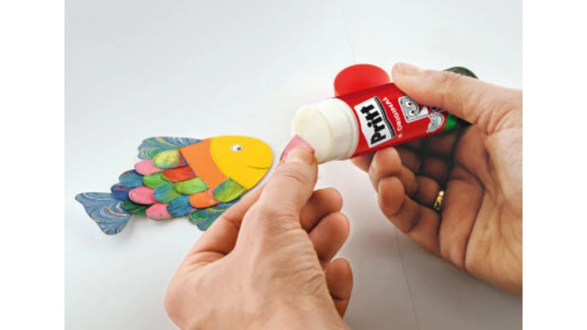- Der Pritt Klebestift kann glatt und gleichmässig aufgetragen werden.