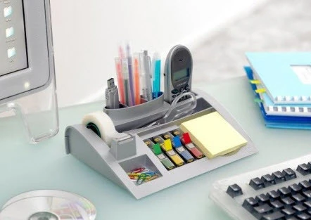 Alles auf einmal: 100 Post-it® Notes 76 x 76 mm, 4 x 35 Post-it® Index Mini, 1 Rolle Scotch® Magic™ Klebeband – Ihre wichtigsten Bürohelfer werden mitgeliefert. Ausserdem bietet der Organizer 7 Fächer für Stifte, Taschenrechner, Visitenkarten und vieles mehr.
