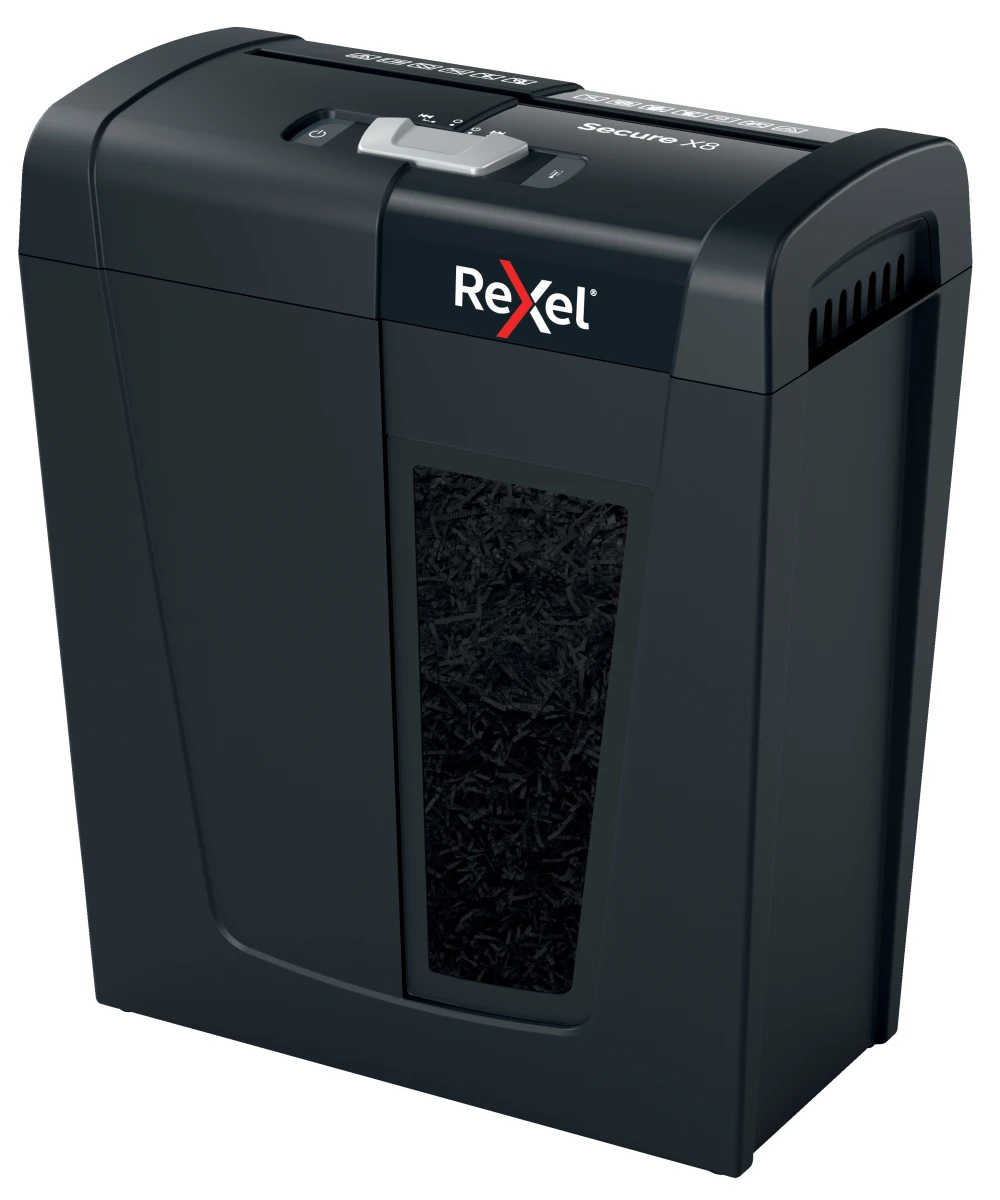 Rexel bietet ein umfassendes Sortiment an Aktenvernichtern, die ideal für die sichere Entsorgung von persönlichen und sensiblen Informationen zu Hause sind. Der Aktenvernichter Secure X8 schreddert bis zu 8 Seiten gleichzeitig über die manuelle Papierzuführung und zerkleinert das Papier in 4 x 40 mm kleine Partikel (Sicherheitsstandard P4, Partikelschnitt). Dieses schmale Modell eignet sich perfekt für den Einsatz Zuhause oder im Home Office und findet dank seines kompakten Designs bequem unter jedem Schreibtisch Platz. Entwickelt für leichten bis mässigen Gebrauch mit einem 14-Liter-Abfallbehälter.