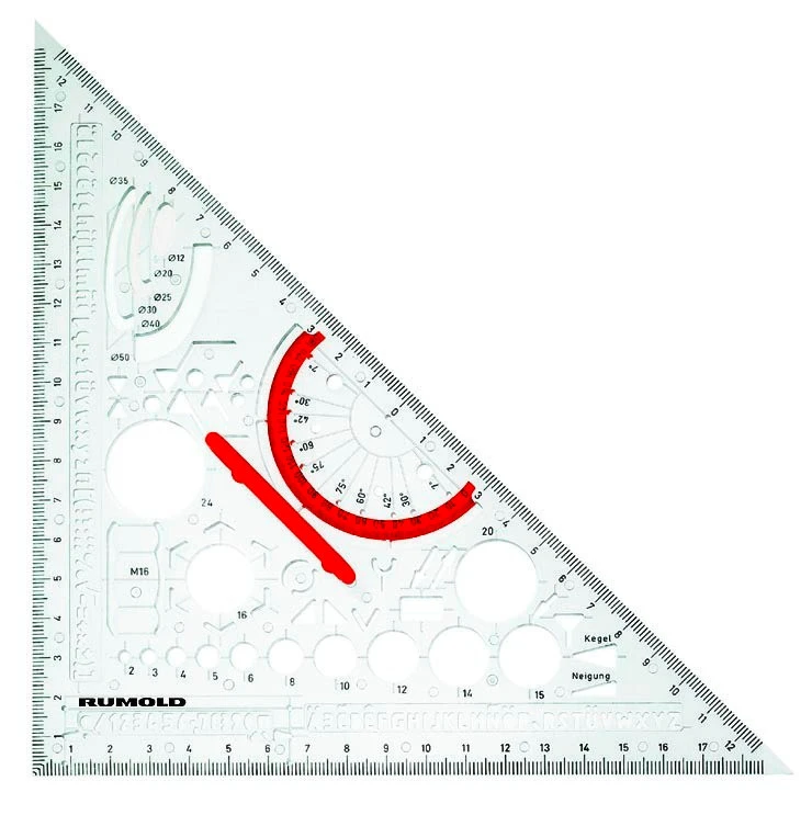 Das Dreieck von Rumold darf weder in der Schule noch bei akkuraten Arbeiten in technischen Tätigkeiten fehlen. Sie können bis zu 25 cm lange Linien ziehen oder ausmessen.