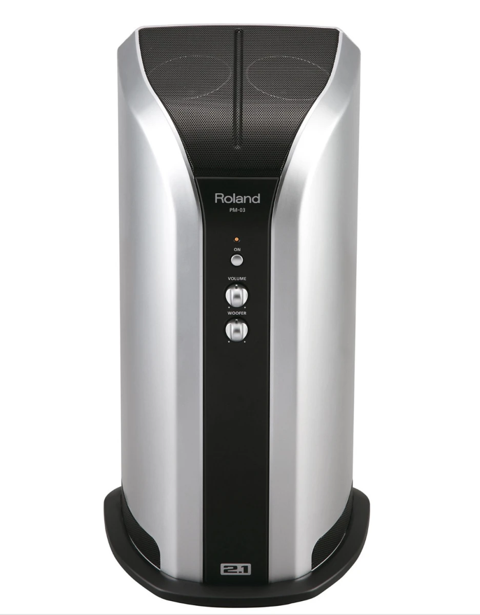 Das neue V-Drums Stereo-Lautsprechersystem PM-03 ist ideal für alle V-Drums Sets und bietet einen erstklassigen Sound mit sattem Bass. Optimal abgestimmt gibt das 2.1 Soundsystem alle Frequenzen der V-Drums perfekt wieder. Der weite Frequenzbereich sorgt für einen besonders klaren und druckvollen Drumssound. Durch das moderne, elegante Design passt das Soundsystem ideal zwischen die Pedale des Drumsets. Das PM-03 ist stabil gebaut und hat ein Gewicht von 6 Kilogramm. 2x 7,5 cm Breitband mit 1x 12 cm Basslautsprecher geben den Drumsounds mit 30 Watt Ausgangsleistung den nötigen Wums. Der Personal Drum Monitor verfügt über folgende Eingänge: Stereo Miniklinke, Klinke Links/Mono und Klinke Rechts/Stereo.
