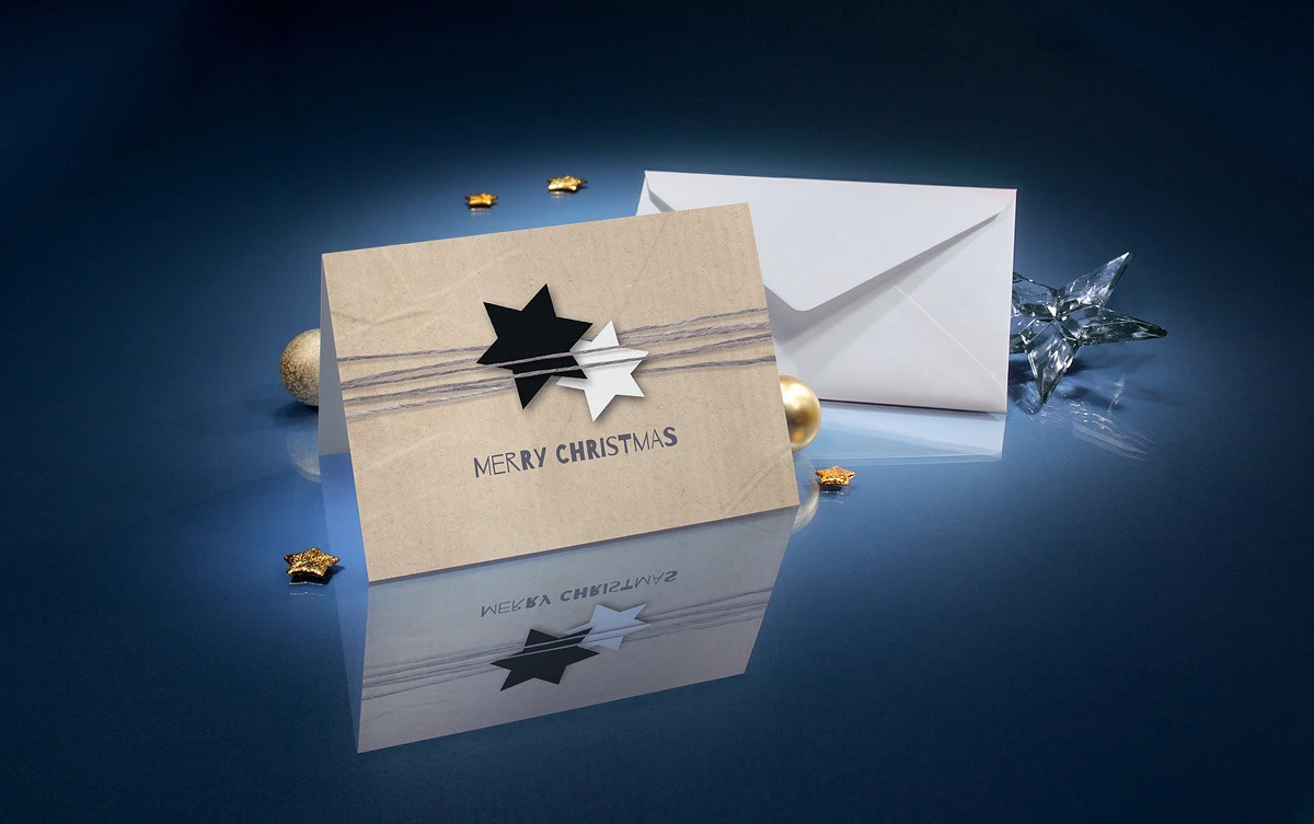 Weihnachts-Karten "Christmas Wrapping" auf Glanzkarton mit Schriftzug "Merry Christmas" im modernen Packpapier-Design. Die Grusskarten sind zum Bedrucken mit Inkjet- und Laser-Drucker sowie zum Kopieren geeignet. Im Lieferumfang sind 25 Stück im Format DIN A6 enthalten, inklusive passender weisser Umschläge.