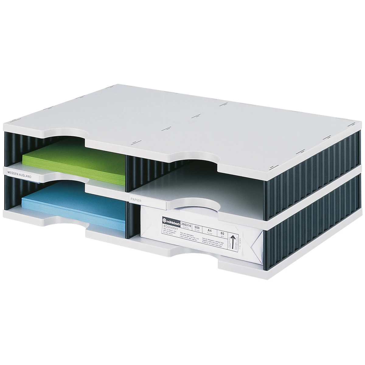 STYRO Abglagesystem Styrodoc 268-0202. Duo 4 Fächer schwarz/grau
