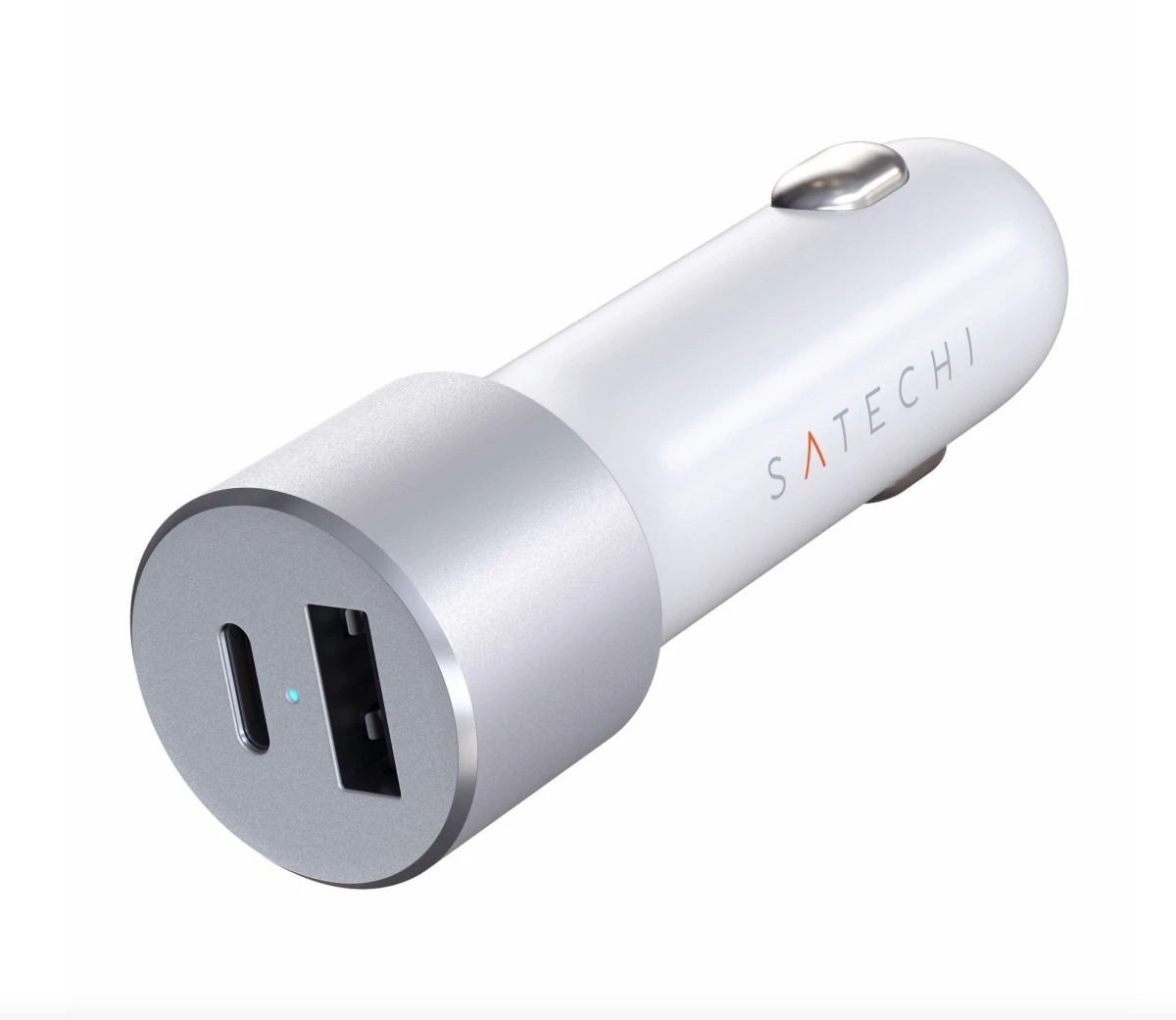 Der Dual Car Charger von Satechi ermöglicht dir gleichzeitig z.B. ein MacBook Pro 13" (2016) über den USB-C Port und ein iPhone/Tablet über den USB-A Port zu laden. Die Ausgangsleistung für den USB-C Port beträgt 60 W (max) und 12 W für den USB-A Port.