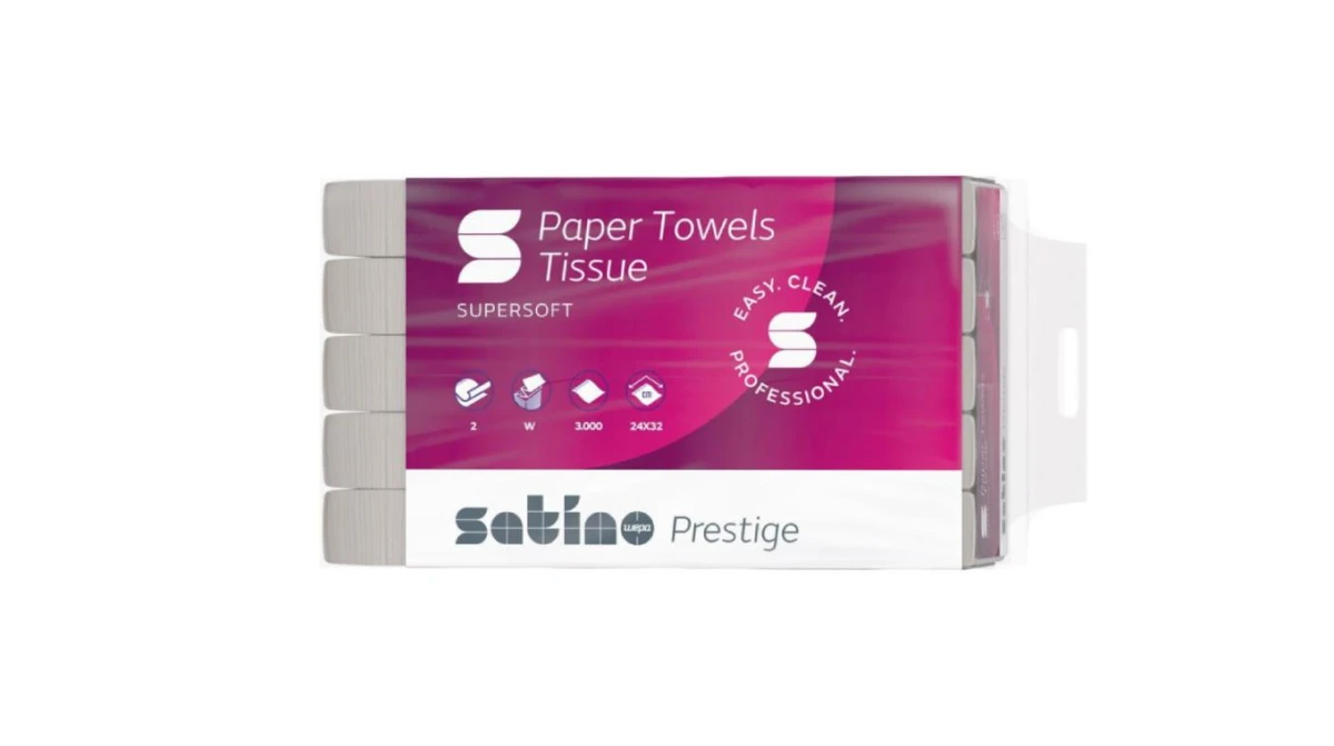 | final_Name | Name | ✗ | ✗ | Satino prestige Papierhandtücher 2-lagig, hochweiss, W-Falzung, 24x32cm, Karton à 3'000 Stück | ||
