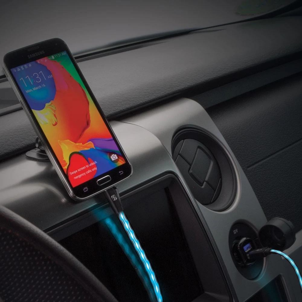 Das Scosche FlatOut Flow ist das perfekte Micro-USB Kabel zum Aufladen und Synchronisieren Ihres Geräts. Dank der LED anzeige wissen Sie immer wann Ihr Gerät komplett Aufgeladen ist. Der LED Strom zeigt Ihnen mit der Geschwindigkeit wie viel Akku Ihr Gerät hat (schneller Fluss = wenig Akku, langsamer Fluss = fast vollgeladen). Ist das Gerät vollständig geladen gehen die LED’s aus. Dieses Micro-USB Kabel gibt Ihnen die Freiheit, um Ihr Gerät zu verwenden, während Sie es aufladen oder synchronisieren.