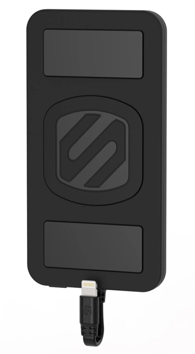 Besonders praktisch: Der Akku ist portabel. Das Device wird per Akku betrieben. Dieser Akku, dieser Magnet von Scosche hat ein Gewicht von 0,27 Kg.