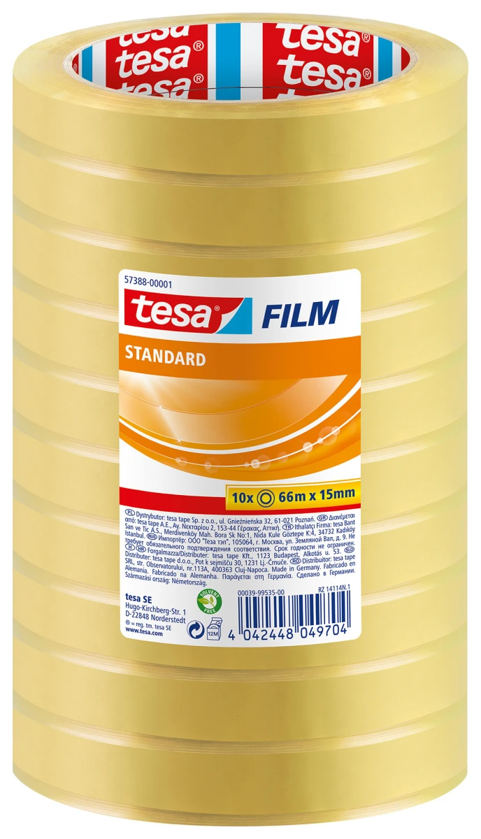 Das Klebeband von Tesa eignet sich für den universellen Einsatz in Haushalt und Büro. Es ist transparent und lösungsmittelfrei. Gefertigt wurde das Klebeband von Tesa aus Polypropylen. Die Breite des Klebebands misst 15 mm.