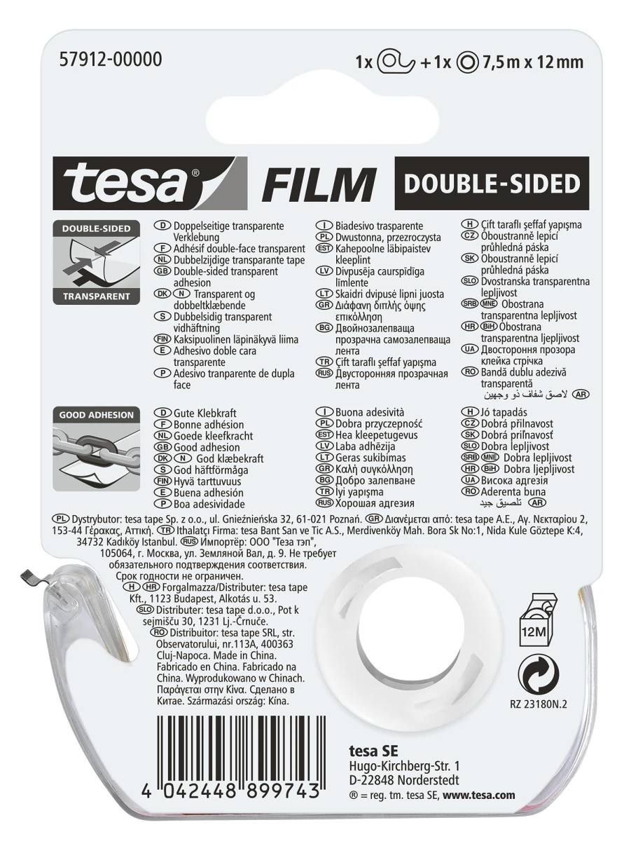 Produktinformationen "Tesafilm doppelseitig 12 mm x 7,5 m + Einwegabroller"