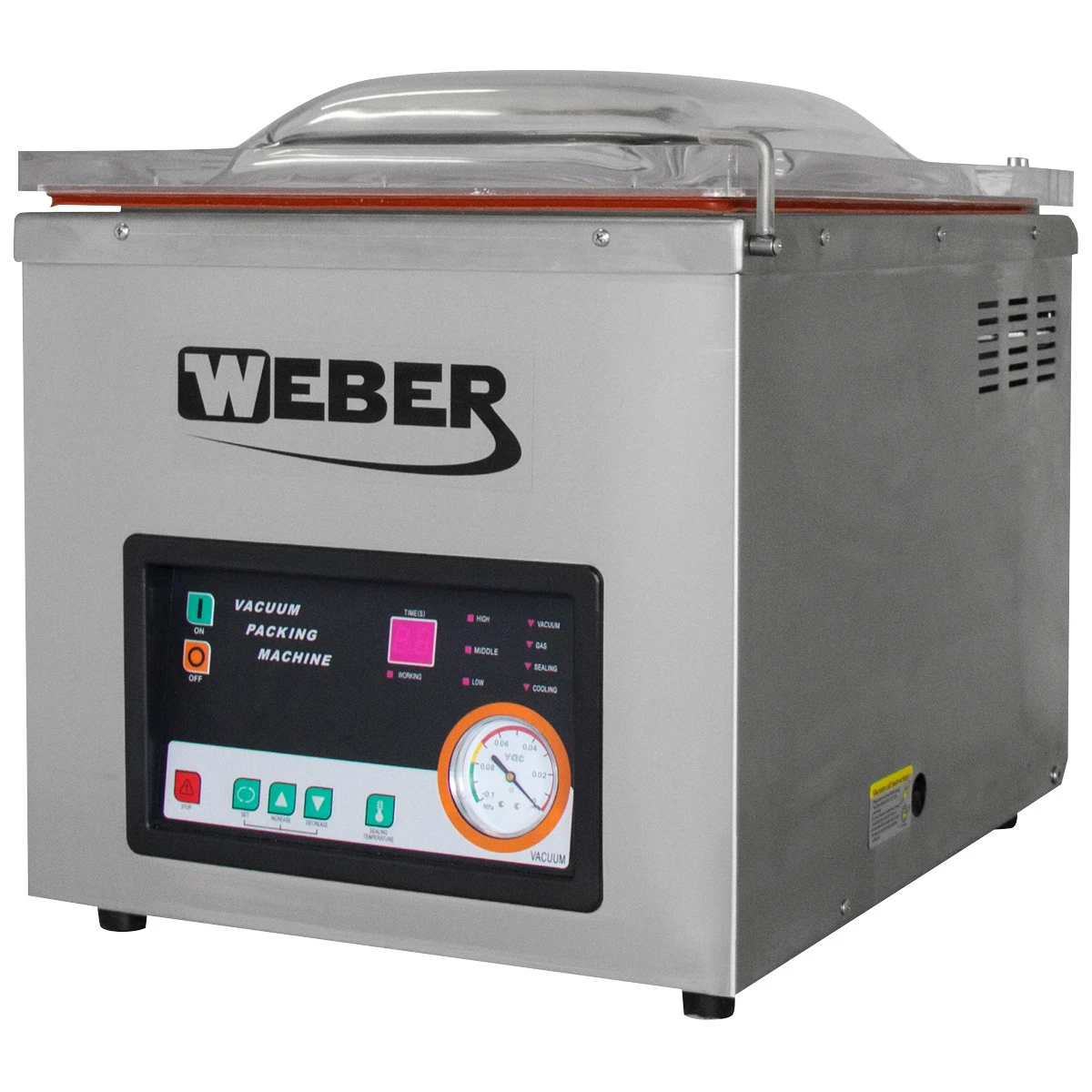 Diese Vakuum-Verpackungsmaschine von Weber ist bestens geeignet für den gewerblichen Einsatz in der Lebensmittelindustrie. Sie verpackt Lebensmittel sicher und hygienisch und ermöglicht so eine längere Haltbarkeit.
